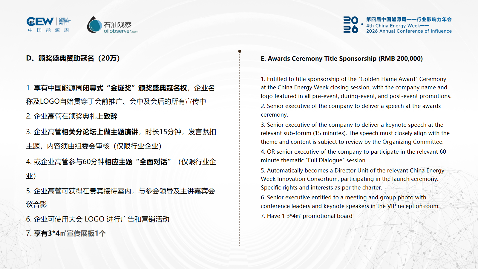 "2026第四届中国能源周——行业影响力年会" 招商合作